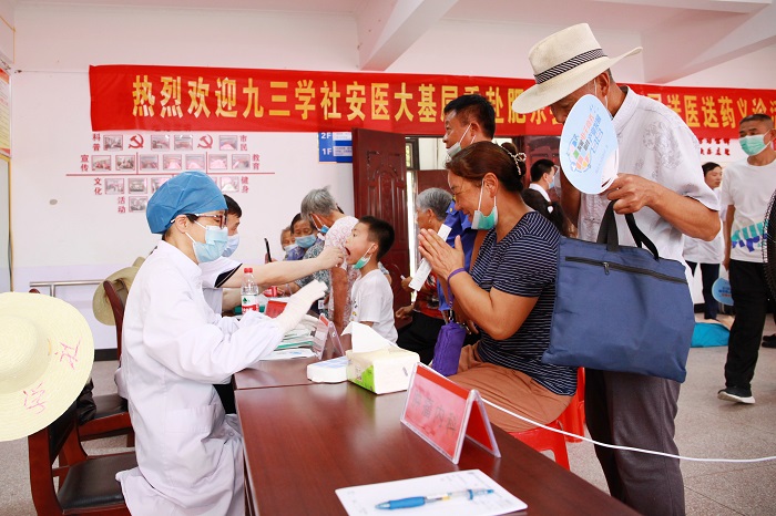 在杨店乡政府办事大厅,来自内科、外科、儿科、肿瘤科、妇产科、口腔科、耳鼻喉科、心电图室等科室和护理方面的20多位专家顶着烈日,为前来现场的村民开展免费诊疗服务,并向在场群众免费发放药品。何熔老师为当地村民进行了细致口腔检查,并向村民开展口腔科普,讲解正确的刷牙方法。义诊专家还亲自为当地医生开展培训,提升他们的急诊急救技能。活动持续3个小时,接诊400余人次,各位专家心系百姓健康、深入基层办实事之举,赢得了当地政府和群众的高度赞誉。