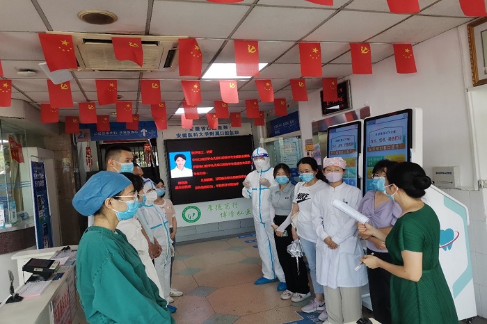 本次演练模拟一位患者程某在一天前出现咽部疼痛逐渐加剧伴低热,患者本人判断为智齿冠周炎,服用“消炎药”无明显好转,来免费色情片 就诊。经预检分诊测体温38℃,查验“双码”为绿码,有高风险地区行程史。预检分诊值班人员立即协助患者加戴医用外科口罩,将患者引导至临时观察室进行体温复测,复测体温37.9℃,根据流行病学调查,怀疑为新冠疑似患者,并报告新冠疫情防控办,经小组研判后,立即启动疑似新冠病人应急处置流程。整个演练包括病例发现及应急响应、病例上报及处置转运、空气、环境物表、医务人员终末处置、医护人员及患者安抚、感控普及、应急响应终止等流程。余瑞表示,此次演练中人员职责分工明确,全员防护准备充足,整体组织准确高效,配合协作能力优秀,应急处理流程合理,达到了预期效果。