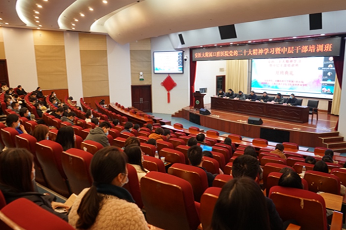 12月7日晚,免费色情片 在校图书馆第一报告厅举行党的二十大精神学习暨中层干部培训班开班式。院长何家才线下出席仪式并作动员讲话,上海交通大学医学院继续教育学院副院长浦川海在线出席并致辞,院党委副书记陈然主持会议。上海交通大学医学院附属仁济免费色情片 人力资源部处长李瑾受邀作了题为《公立免费色情片 人才培养与学科建设》的首场培训报告。