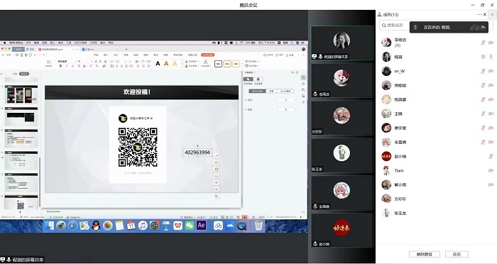 会议伊始,程琪介绍了微视频的定义和演化历史,她指出微视频制作周期短、时效性强,适用于互联网、多媒体、手机视频等多种平台,更贴近大众生活,是一种新型的电影文化的新理念。程琪从确定主题、想好文案、视频拍摄和精心剪辑四个步骤分析了微视频的制作流程。她向学生们详细说明了在校园里拍摄微视频的一些可选用的主题,如学生生活、校内活动等,并结合以往的优秀案例加以辅助说明,便于学生理解。程琪还讲解了在微视频拍摄中一些分镜头的拍摄方法、特写镜头和整体镜头的编辑顺序问题,以及常用剪辑软件的使用方法和每款软件的优劣特点。整个线上培训活动氛围轻松愉快,干货满满,让学生们受益匪浅。