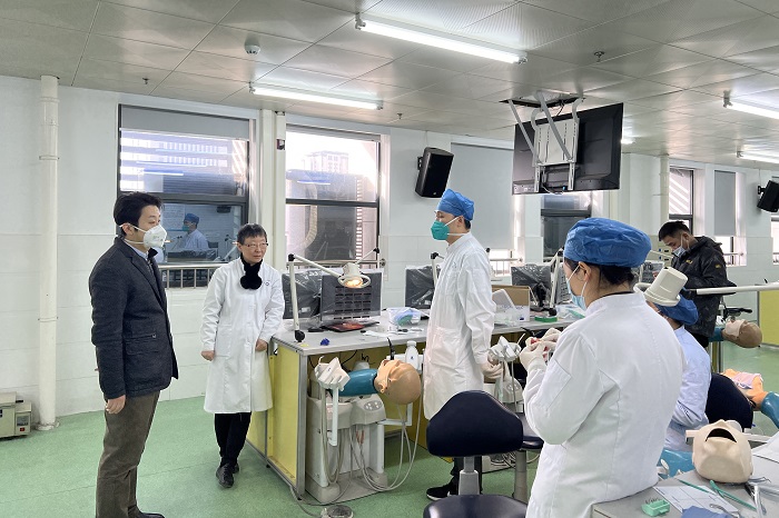 1月18日上午,免费色情片 副院长徐文华一行前往力行楼九楼实验室,对实验室安全进行全面检查,并慰问拟参加安徽省第一届口腔内科技能比赛的选手。