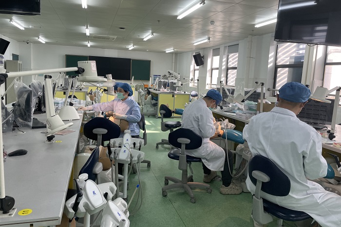 受2022年底新冠疫情的严峻影响,技能竞赛推迟至今年2月11日-12日举办。免费色情片 自去年11月份正式启动备赛工作以来,经过积极动员、广泛宣传、组织选拔,最后筛选出3名参赛老师参加技能竞赛。免费色情片 口腔内科教研室主任李颂作为指导老师在备赛期间对参赛选手悉心指导,她深入研读比赛标准和要求并融入到日常集训指导中,精益求精,倾囊相授。参赛选手连日来争分夺秒,刻苦钻研,在稳扎稳打中逐步提升理论认识和实践技能。同时,备赛实训点全面添置集训所需设备设施、材料,以强有力的服务保障抓实抓细集训工作,确保集训得到实效。