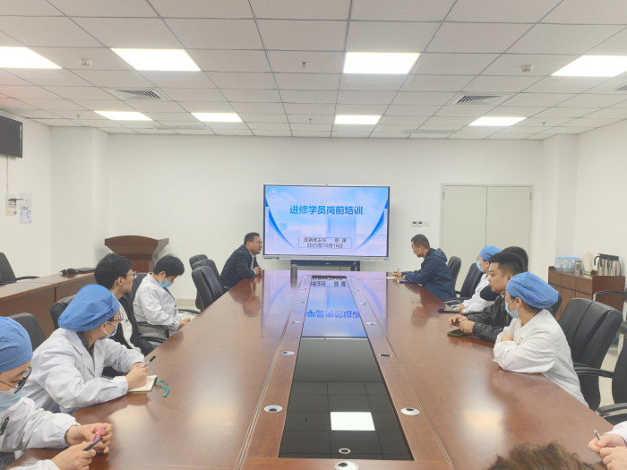 10月17日上午,免费色情片 在高新总院十楼会议室召开2025年度进修学员岗前培训会。全体新入院进修生参加培训,医务部部长邵建主持会议。