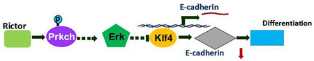 21世纪是生命再生医学的年代,干细胞研究起到了重大的推动作用。对于干细胞的研究,有助于阐明许多重大疾病的发病原因,在干细胞的研究中干细胞如何自我更新(Chambers and Smith, 2004)(也称为干性维持)以及如何调控其多种分化潜能是其热点和难点,免费色情片 朱友明课题组首先比较Rictor在MEF和R1-ES细胞中的表达,发现Rictor在R1细胞中表达显著低于MEF细胞,随后在R1这种无需饲养层的干细胞中敲低目的蛋白Rictor的表达水平,加入RA(1uM)处理或者不加RA处理,发现敲低Rictor后R1不分化,过表达Rictor会诱导干细胞R1分化,在IPS的诱导过程中Rictor表达水平下调,而在RA诱导R1分化过程中Rictor表达水平上调。以Rictor为靶蛋白通过免疫共沉淀验,并进行质谱分析发现Prkch与Rictor相互作用,同时发现过表达Prkch会诱导干细胞R1分化,进一步的研究发现Rictor通过促进Prkch642位丝氨酸磷酸化,而642位丝氨酸磷酸化的Prkch进一步影响Klf4295位丝氨酸磷酸化,从而导致Klf4转录活性的变化,抑制Klf4依赖E-cadherin的表达,随后导致ES细胞分化。该研究结果表明,Rictor-Prkch-Klf4通路在调节ES细胞分化中具有重要作用,为未来研究mTORC2对干细胞分化的影响具有一定的指导意义。