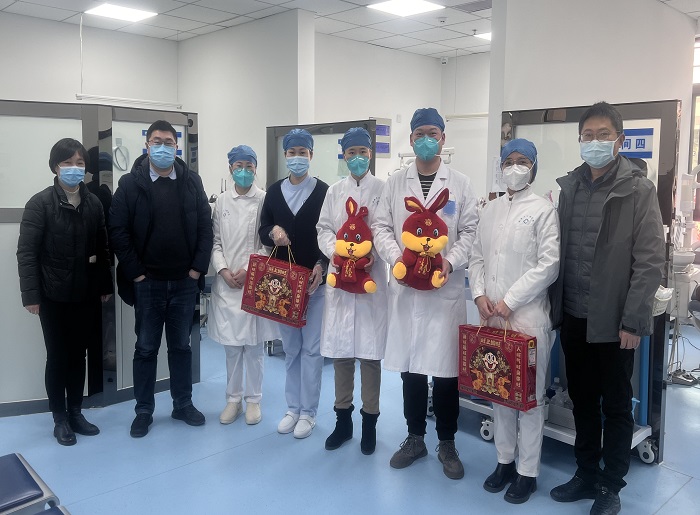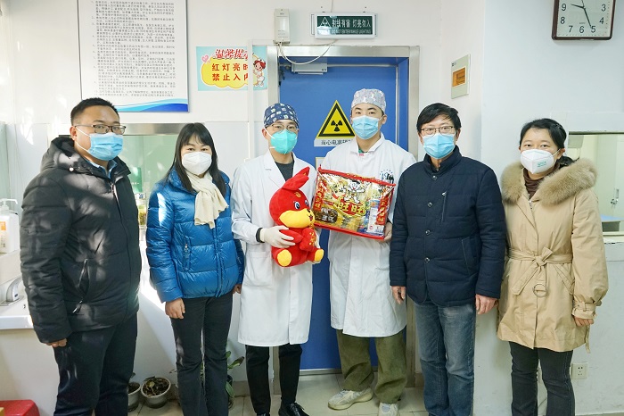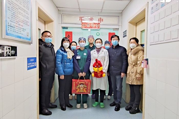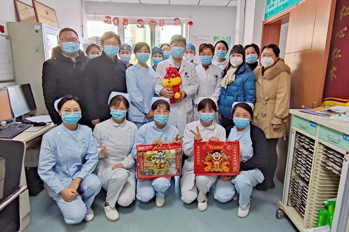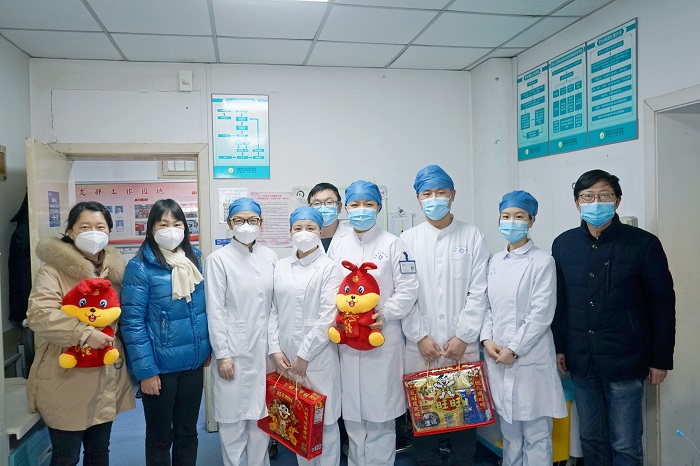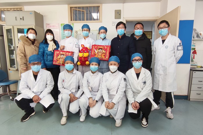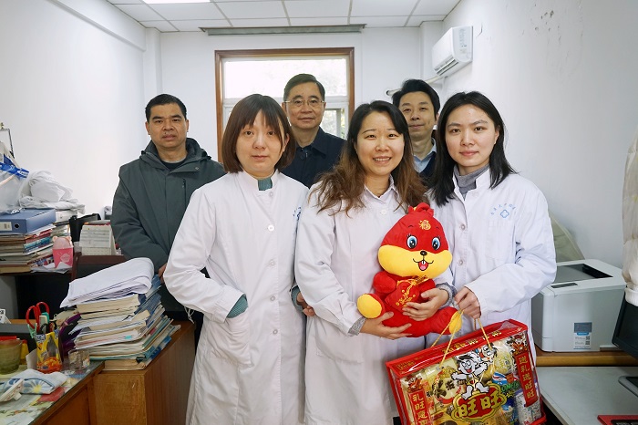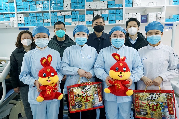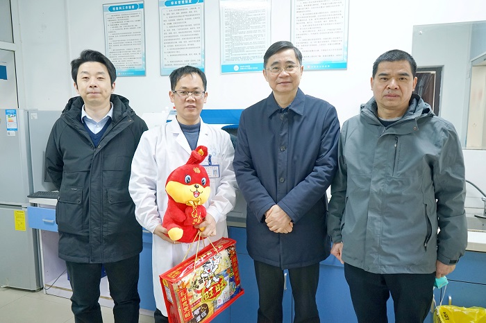 1月29日上午,免费色情片 党委书记王润玲、院长何家才携全体领导班子成员深入临床医技科室、行政后勤职能部门及各门诊部,亲切慰问坚守岗位的全体师生医护员工,并送上新春的问候和暖心的关怀。