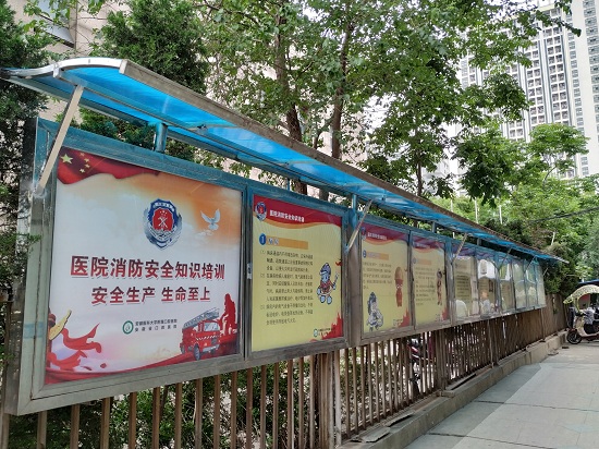 消防安全展板、院周会及巡查等机会,广泛宣传,不断提高医务人员的消防安全意识。