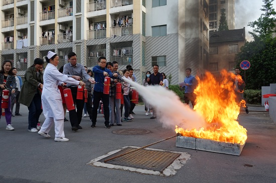 组织全院各科室代表人员在校图书馆后的安全位置,进行灭火器使用操作演练。专业人员首先详细介绍了灭火器的使用方法及注意事项,在工作人员的组织和指导下,全体演练人员分为5组,逐一操作灭火器对模拟火灾现场进行扑救演练。大家姿势标准,反应敏捷,对准着火点,集中喷射,熊熊燃烧的火盆瞬间被扑灭。通过演练,将理论知识和现场实践相结合,使大家熟练掌握了基本的消防实操技能,提高了扑救初期火灾的意识和能力。