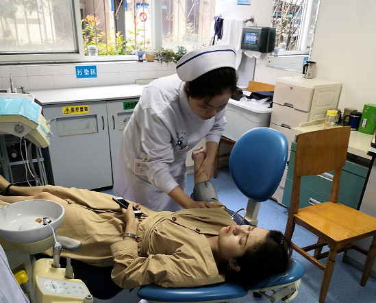 9月6日下午5点,综合科医护人员像往常一样忙碌着。突然,一位男士的呼喊声传来:“有人晕倒了”。护士长刘佳佳听到后第一时间冲了出去。只见免费色情片 门口,几个好心人正在扶起一名晕倒的女生,她面色苍白,四肢无力,嘴角有血,刘佳佳凭借丰富的临床经验判断她是拔牙术后发生了低血糖。于是和好心人一起把她扶到牙椅上躺着。科室其他护士也纷纷停下手中的工作,帮着开窗通风,为她准备高糖溶液口服、测量血压、倒温开水等,患者情况慢慢好转。