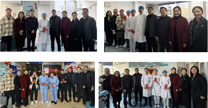 副院长曹颖、总会计师程进松、正处级组织员谢宜鹏等院领导携部分职能科室走访慰问了政务区、滨湖、包河区、庐阳区、望湖城等门诊部,为大家送上了新春慰问红包,表达对职工及其家人的美好祝愿。